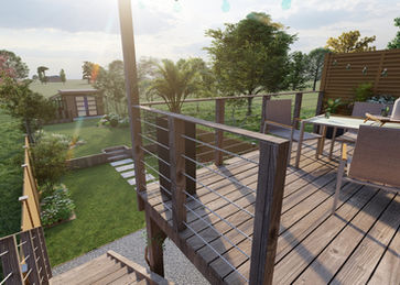 Le projet consiste à construire une terrasse suspendue pour relier harmonieusement la pièce de vie au jardin.